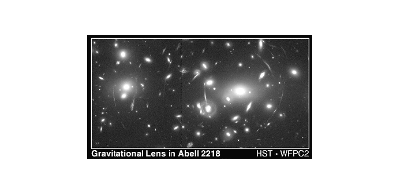Figura 4:Un esempio di lente gravitazionale nell'ammasso Abell 2218.