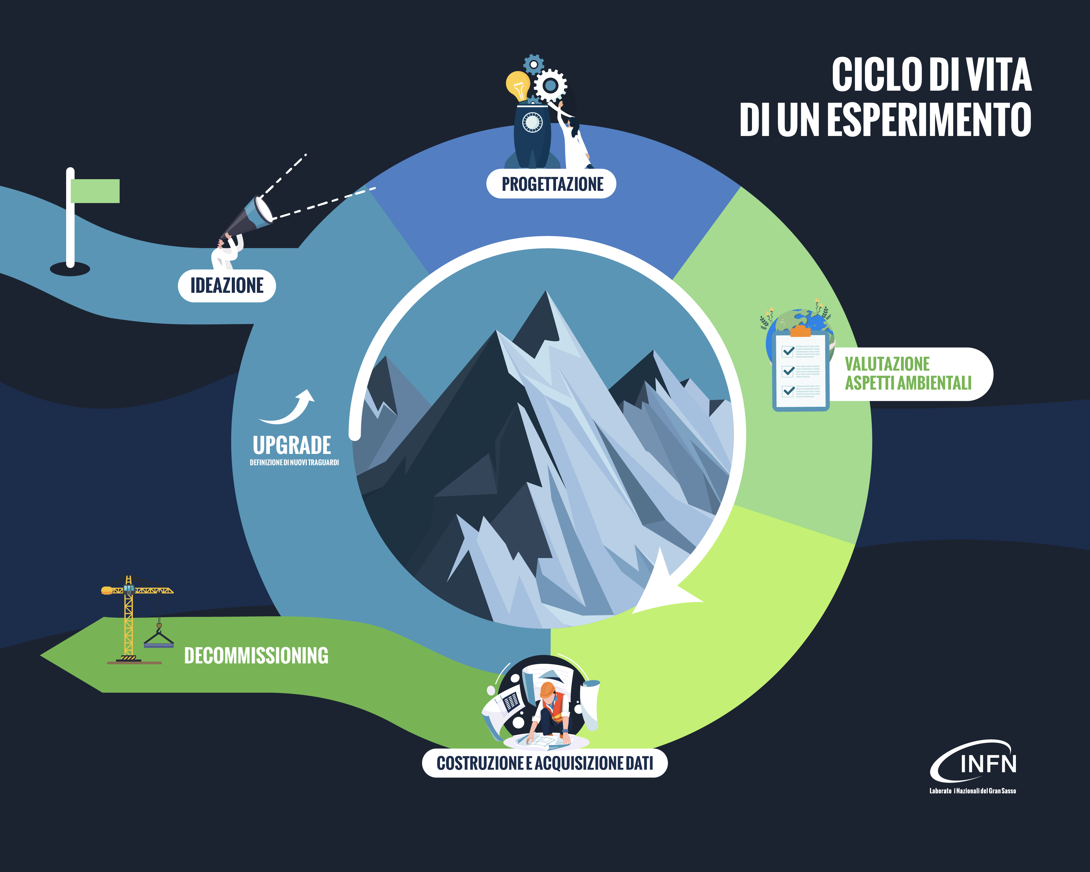 La collocazione degli apparati sperimentali in sotterraneo è indispensabile per le attività di ricerca che, per essere svolte, necessitano di protezione dalla pioggia dei raggi cosmici ovvero del cosiddetto ‘’silenzio cosmico’’. Vista la presenza all’interno del Massiccio del Gran Sasso, i Laboratori pongono grande attenzione al territorio: obiettivo prioritario è garantire la salvaguardia delle persone e dell’ambiente.